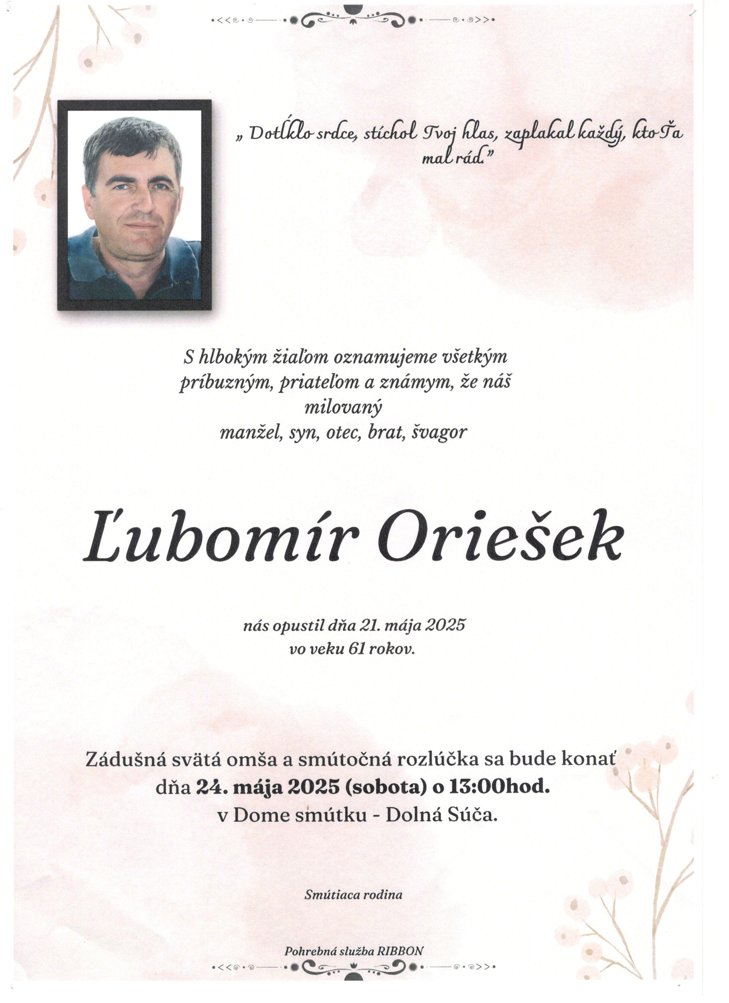 Smútočné oznámenie p. Ľubomír Oriešek 61 r. Typ: JPG obrázok, Veľkosť: 662.02 kB