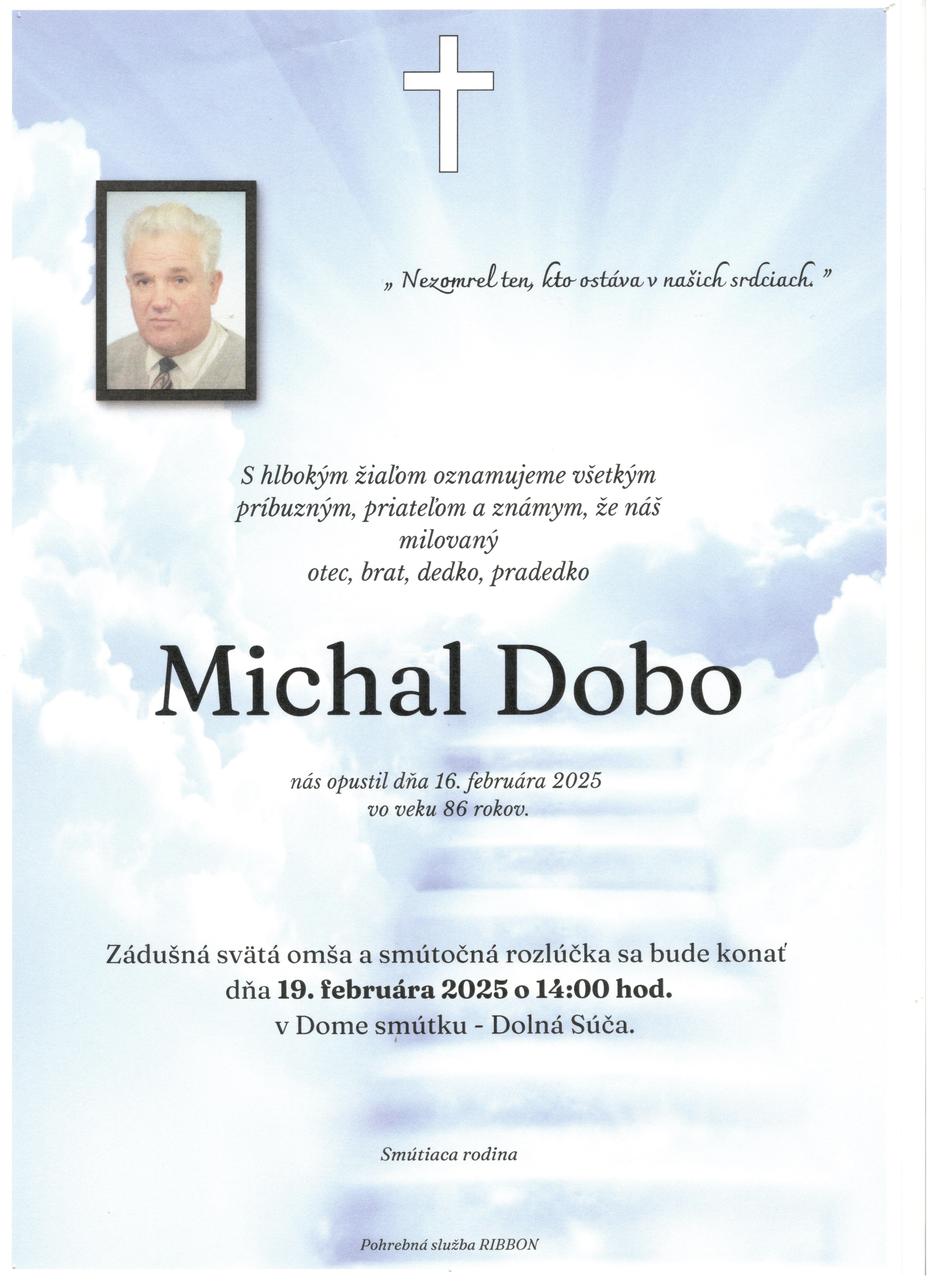 Smútočné oznámenie Michal Dobo 86 r. Typ: JPG obrázok, Velkosť: 5.07 MB