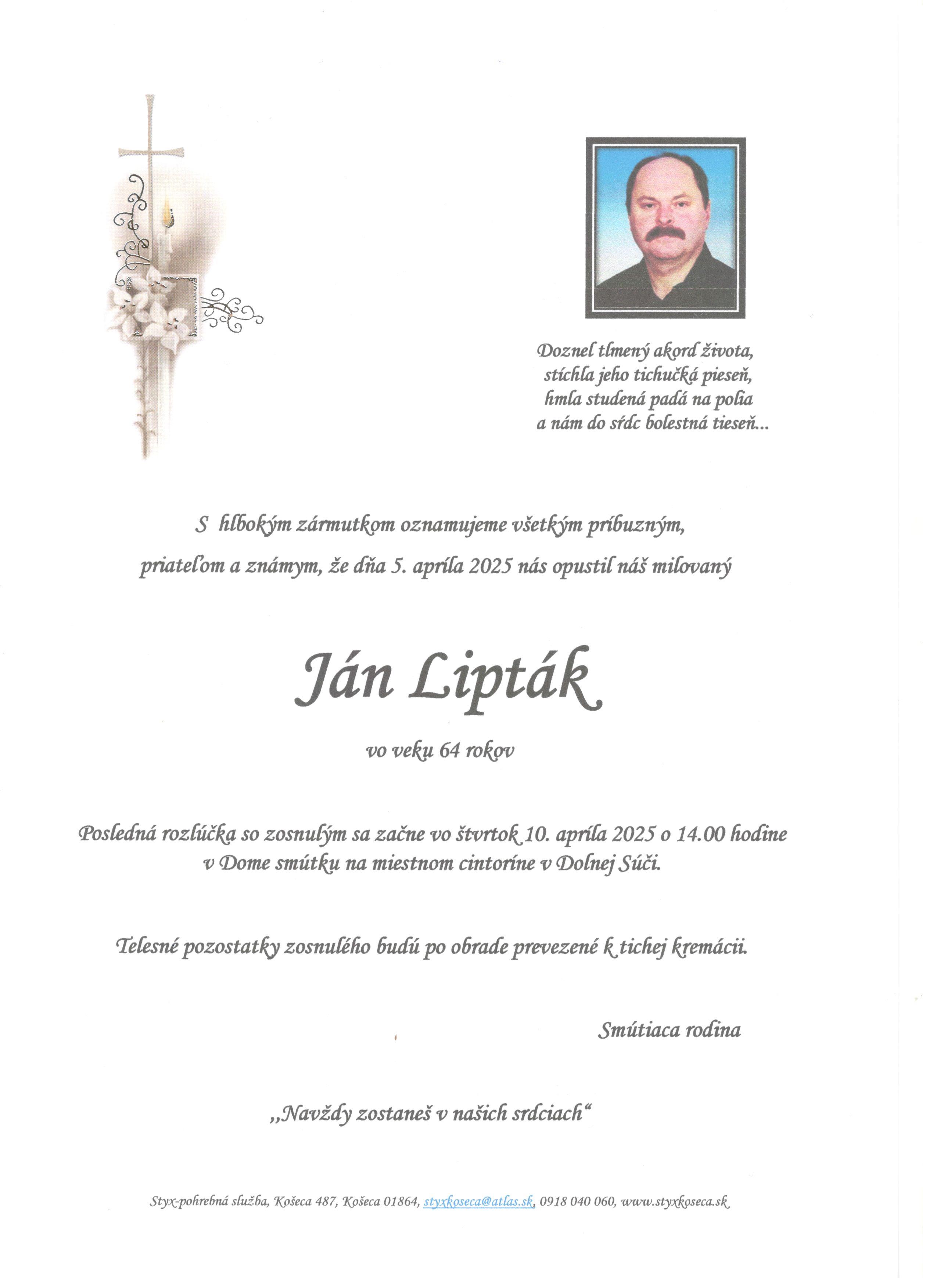 Smútočné oznámenie p. Ján Lipták 64 r. Typ: JPG obrázok, Velkosť: 367.53 kB